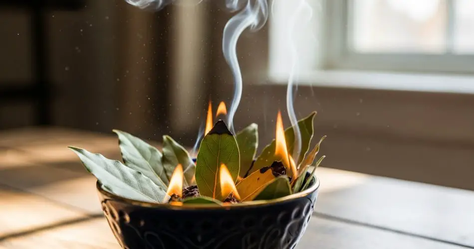 To try this simple ritual, all you need are a few dried bay leaves and a fireproof dish or ashtray. Place one or two leaves in the dish, light them carefully, and let them smolder rather than burn with an open flame. Allow the aromatic smoke to spread throughout the room for about 10 minutes, then extinguish any remaining embers.