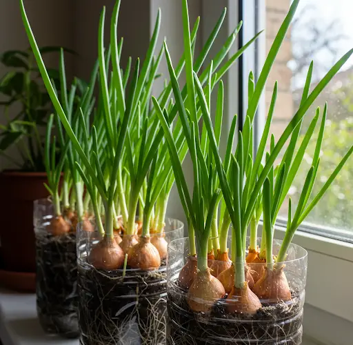 Cost-effective: Plastic bottles are inexpensive or free, and you can reuse them to grow onions year after year.