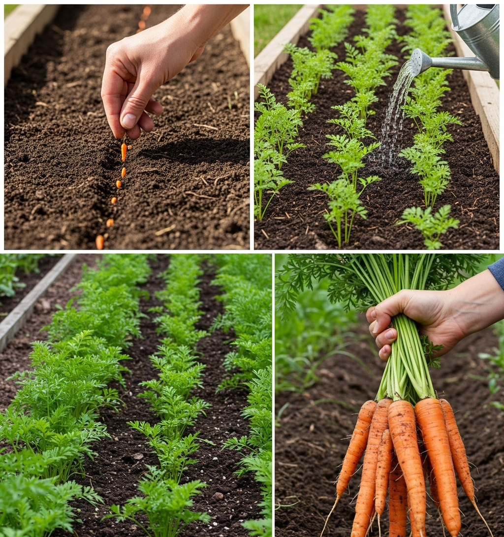 Acquire a plastic bucket or repurposed pot filled with sandy golden soil. Dig holes approximately 40 cm deep, spaced around 8 cm apart within the same row. Leave approximately 25 cm between rows. Spread the seeds evenly and cover them with well-drained, moist soil to prevent water stagnation. Some prefer pre-soaking the seeds to expedite germination. Ensure the soil is soft and devoid of stones or gravel. Mixing sand with soil enhances outcomes. Lastly, incorporate organic fertilizer into your miniature vegetable patch to promote carrot growth.
