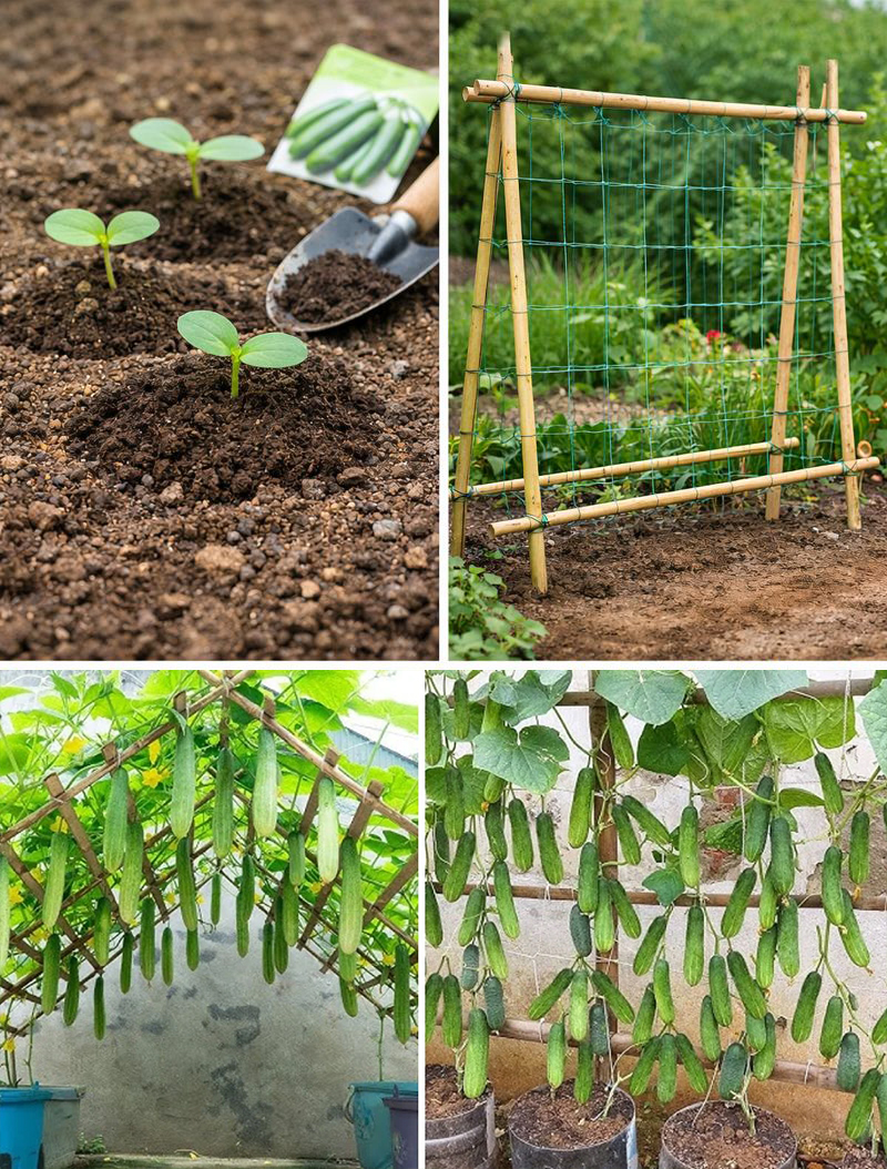 The simplest way to grow cucumbers successfully is to let them do what they naturally want to do—climb. Vertical growing keeps plants healthier, saves space, and dramatically increases fruit production. With good sunlight, rich soil, steady watering, and a simple trellis, cucumbers reward even beginner gardeners with an abundant harvest.
