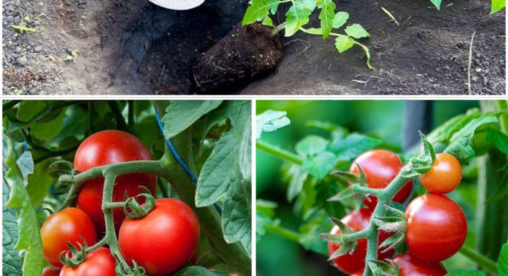 Plant the tomatoes deep into the soil, burying them up to the third leaf node. This method encourages the growth of additional roots along the buried stem, enhancing nutrient absorption and overall plant stability. Learn more about the benefits of planting tomatoes on their side.