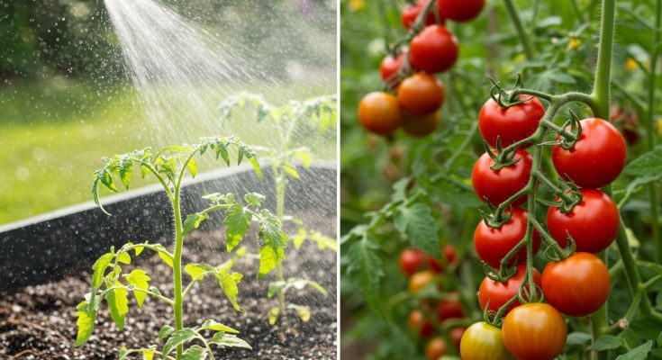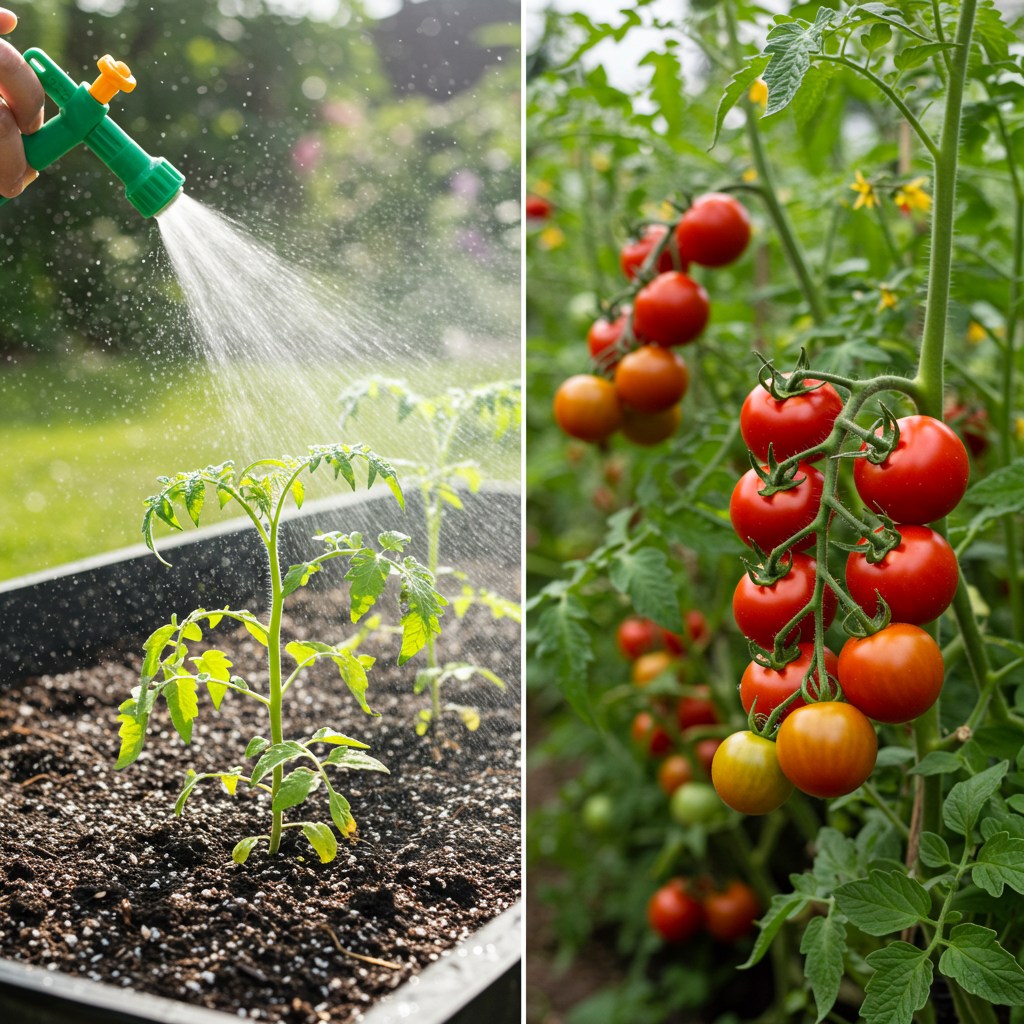- Spray the tomato plants, ensuring even coverage over the leaves.
