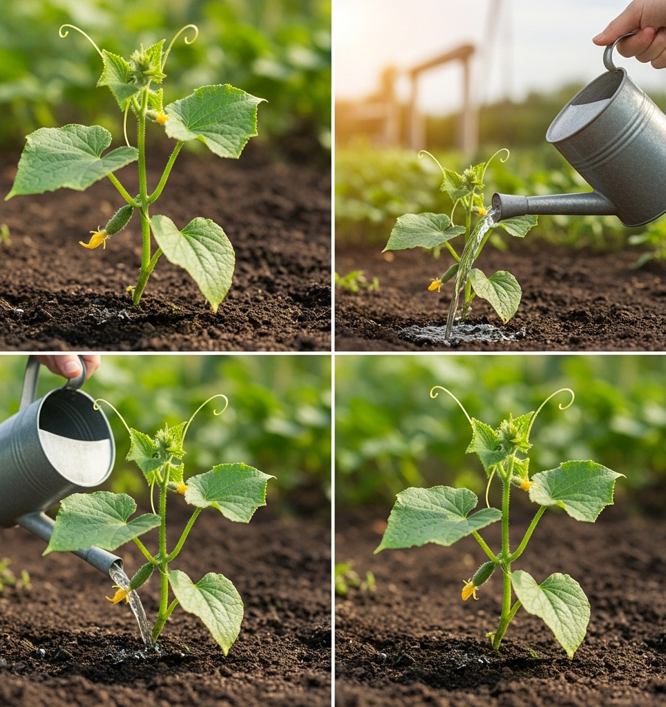 - Proper Watering – Cucumbers need consistent moisture. Water deeply in the morning or evening to prevent wilting.
