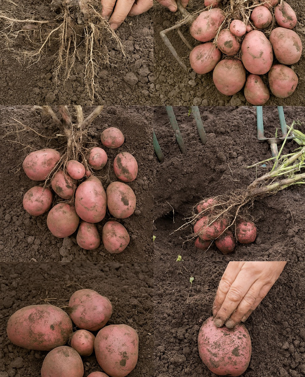 Once the foliage begins to yellow and die back, usually 90–120 days after planting (depending on the variety), your potatoes are ready to harvest. Gently dig around the base with a fork to avoid damaging the tubers.