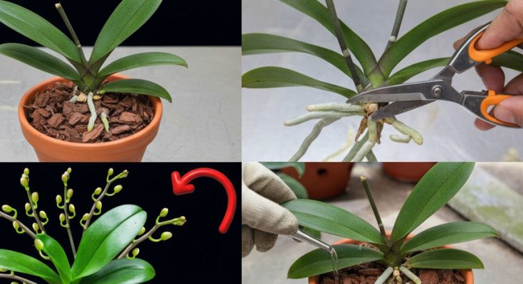 Step 2: Removing the Old Soil and Pruning Orchid Branches