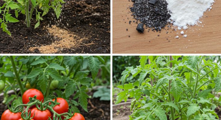 Adding baking soda and wood ash to the soil before planting offers several key benefits for tomatoes: