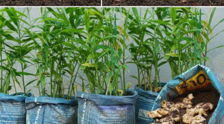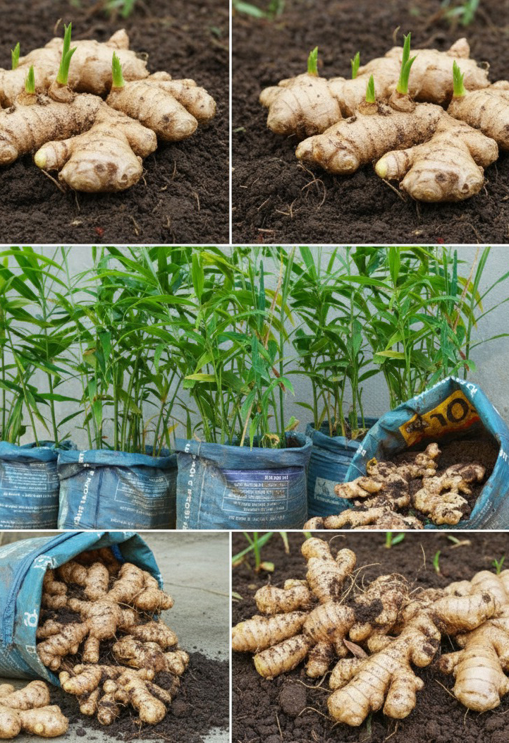 Before planting, you’ll need to “awaken” the ginger by soaking it in water and potassium permanganate (available at pharmacies) for about 2 hours. Place the ginger in a plastic bag, seal it, and leave it in the bag until it begins to sprout (see photo 2).