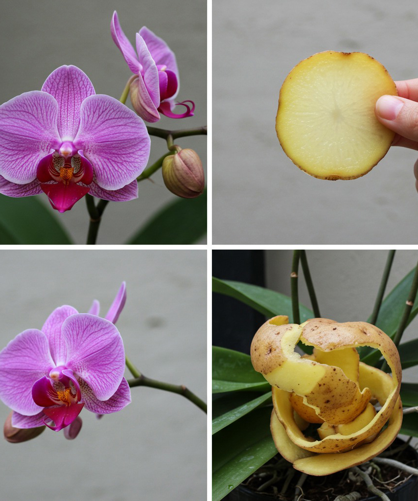 If your orchid has not bloomed for a long time, you can encourage blooming by applying potato peel juice. The nutrients in the potato peels strengthen the roots and help promote the growth of flower branches. It is recommended to give a maximum of eight tablespoons of potato peel juice per pot.
