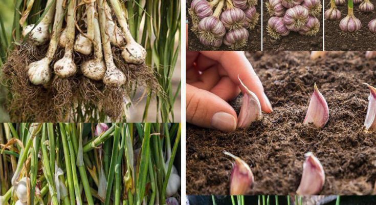 Carefully remove the germinated garlic cloves from the bottle, ensuring you don’t damage the roots. Plant them in the soil, positioning the cloves so the green shoots are above the soil level.
